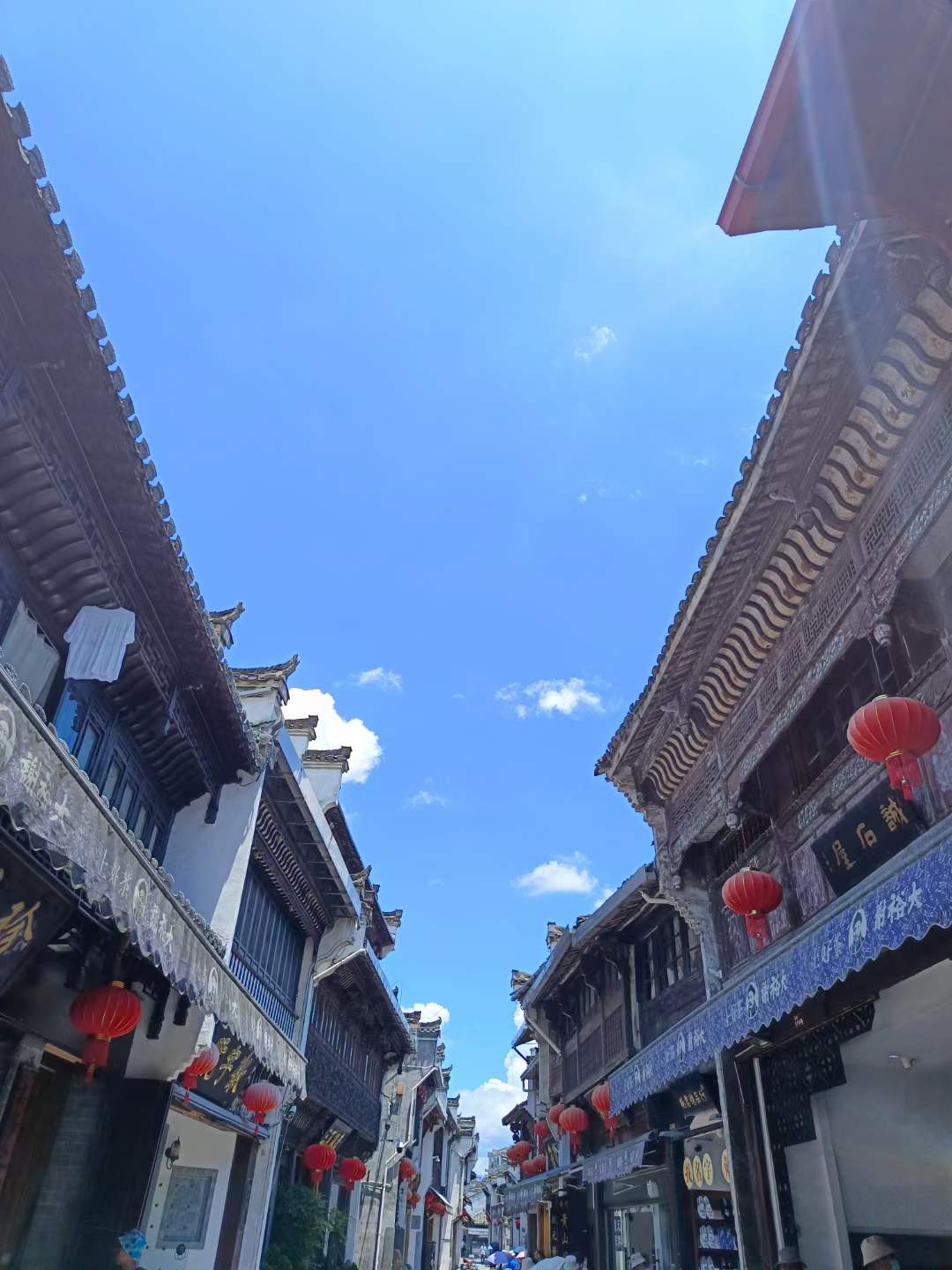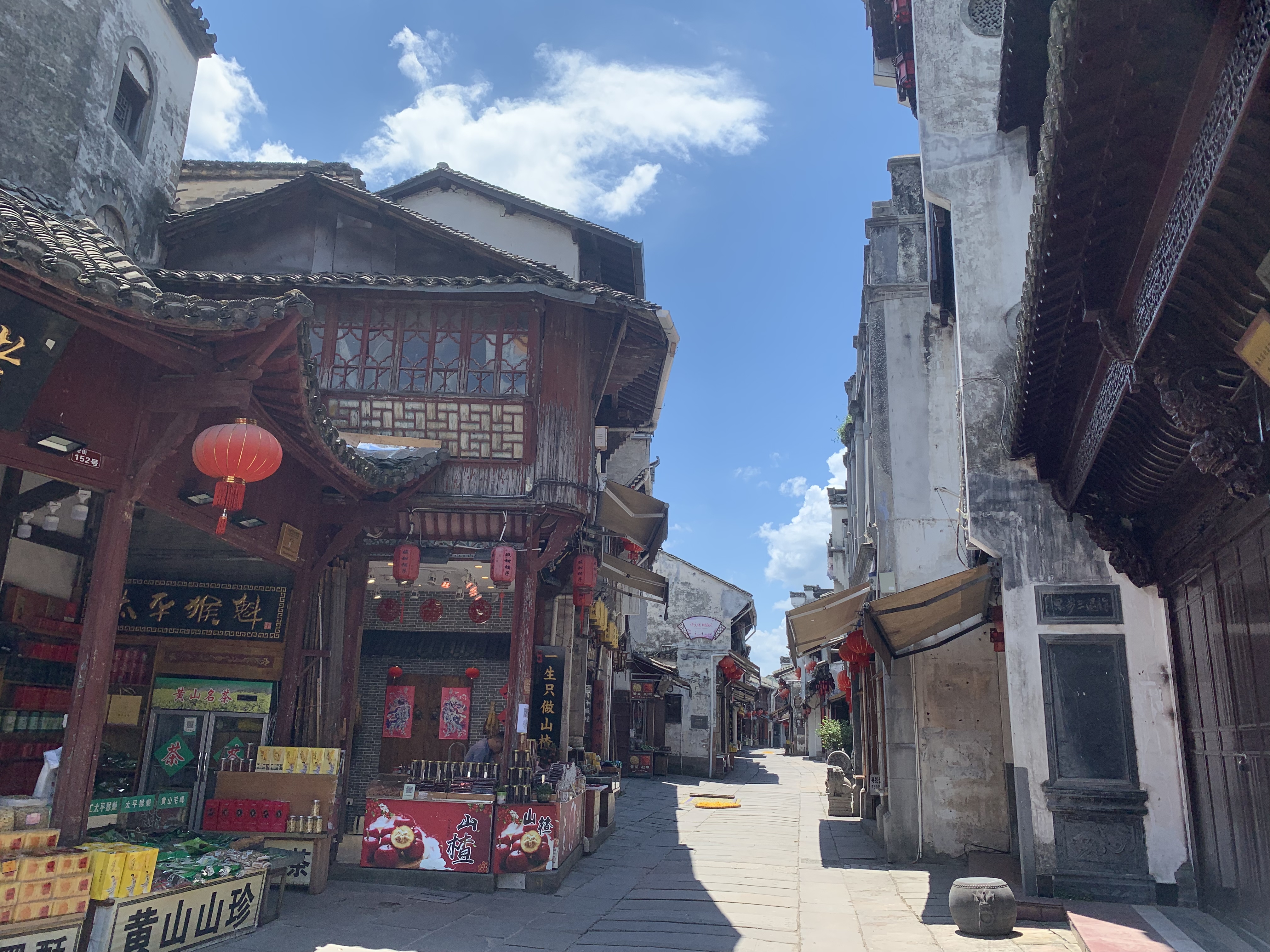 經(jīng)過(guò)3個(gè)多小時(shí)的車(chē)程,我們首先來(lái)到的是屯溪老街。屯溪老街座落在安徽省黃山市屯溪區(qū)中心地段,北面依山,南面傍水,全長(zhǎng)1272米,由不同年代建成的300余幢徽派建筑構(gòu)成的整個(gè)街巷,呈魚(yú)骨架形分布,西部狹窄、東部較寬。因屯溪老街坐落在橫江、率水和新安江三江匯流之處,所以又被稱(chēng)為流動(dòng)的"清明上河圖",是中國(guó)保存最完整、最具有南宋和明清建筑風(fēng)格的古代街市,也是中國(guó)"全國(guó)重點(diǎn)文物保護(hù)單位"。
