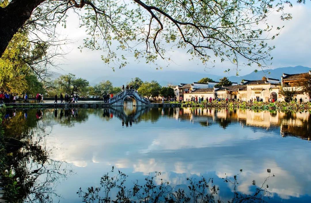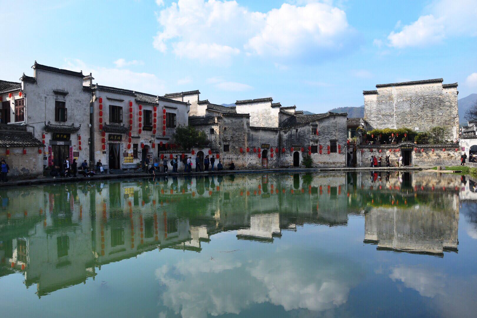 宏村,一座以徽派建筑為特色的村落,始建于南宋,位于黟縣城西北角,距今已近千年歷史,為汪姓聚居之地,因奧斯卡獲獎(jiǎng)電影《臥虎藏龍》而聞名中外,整個(gè)村落占地30公頃,枕雷崗面南湖,山水明秀,被譽(yù)為“中國(guó)畫(huà)里的鄉(xiāng)村”。因空中俯視角度猶如一只大水牛橫臥在田野之中,又稱(chēng)牛形村