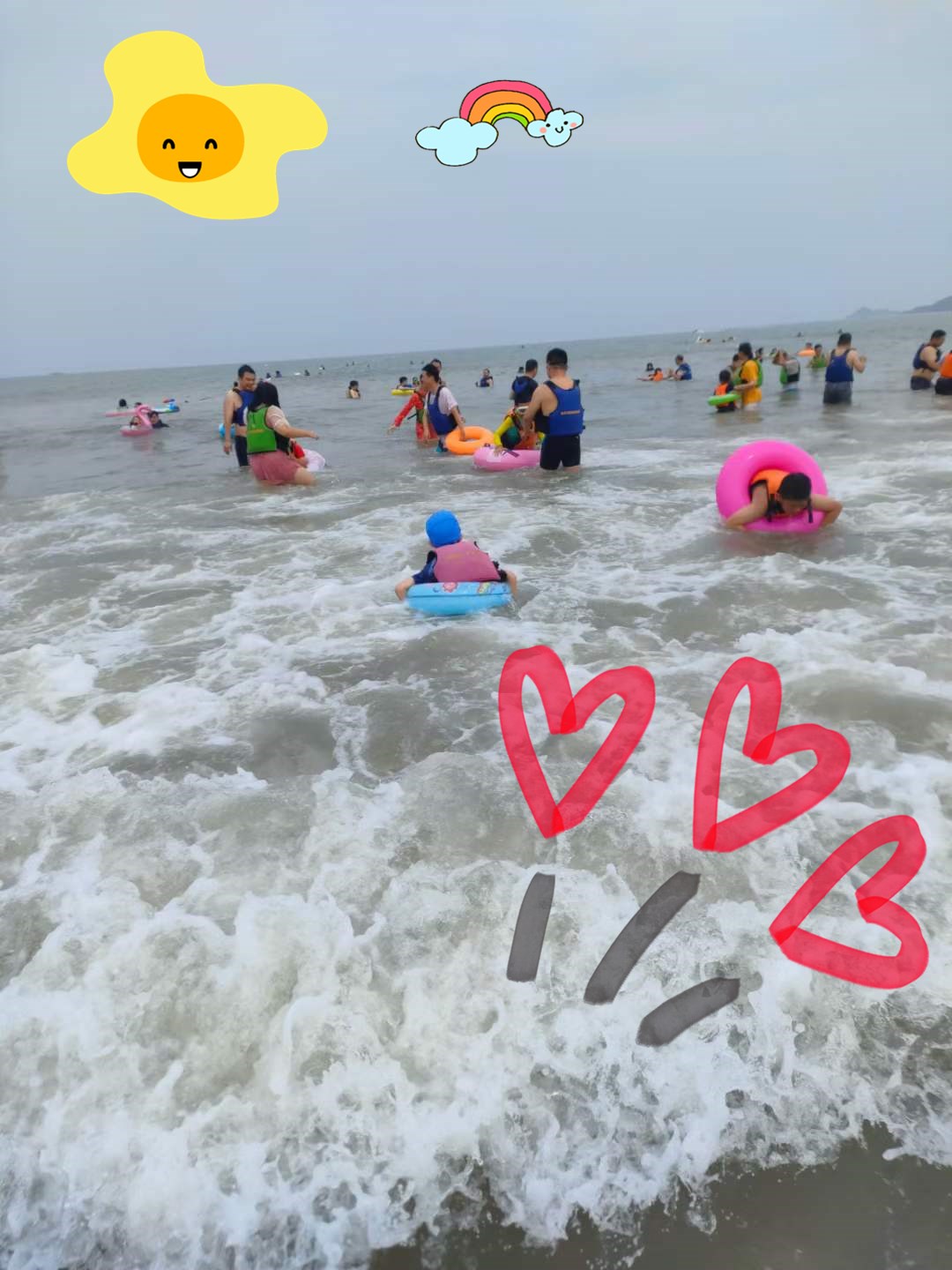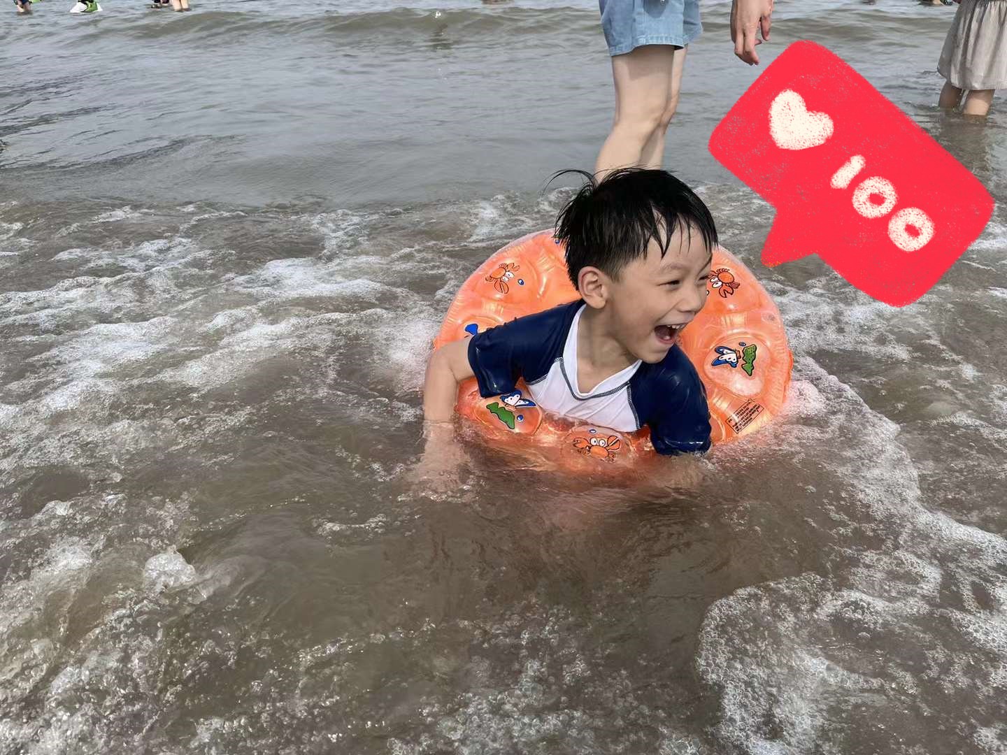小朋友們宛如一只只活潑可愛的小鴨子自由自在地游來(lái)游去。孩子們的喊聲,笑聲,打鬧聲充斥著整個(gè)海灘,蕩漾著歡樂。