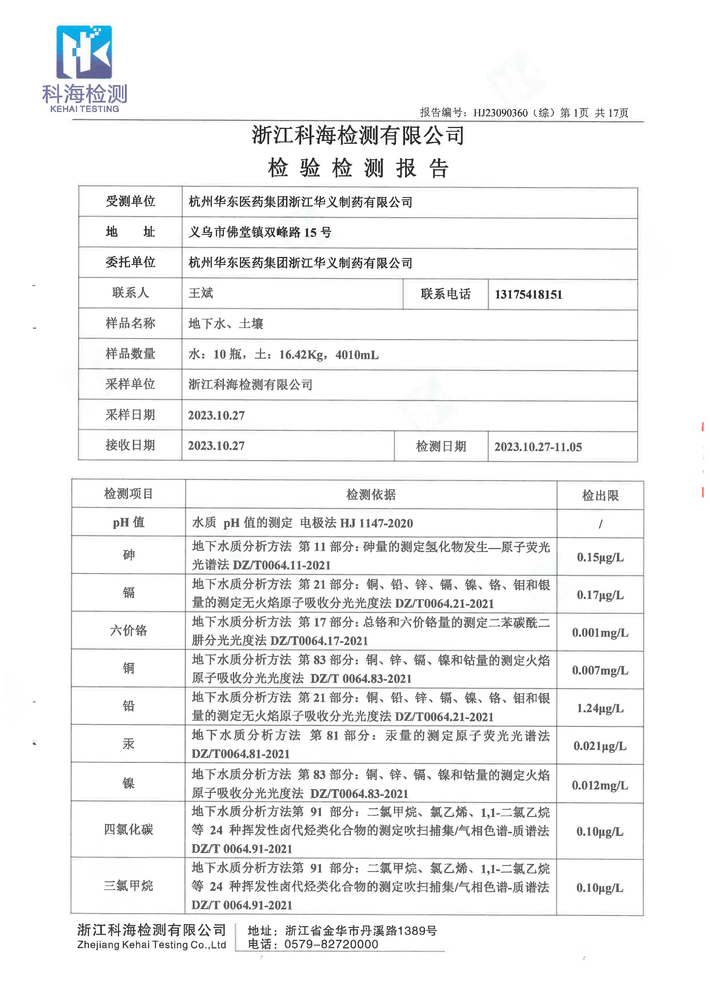 2023年土壤、地下水檢驗(yàn)檢測(cè)報(bào)告